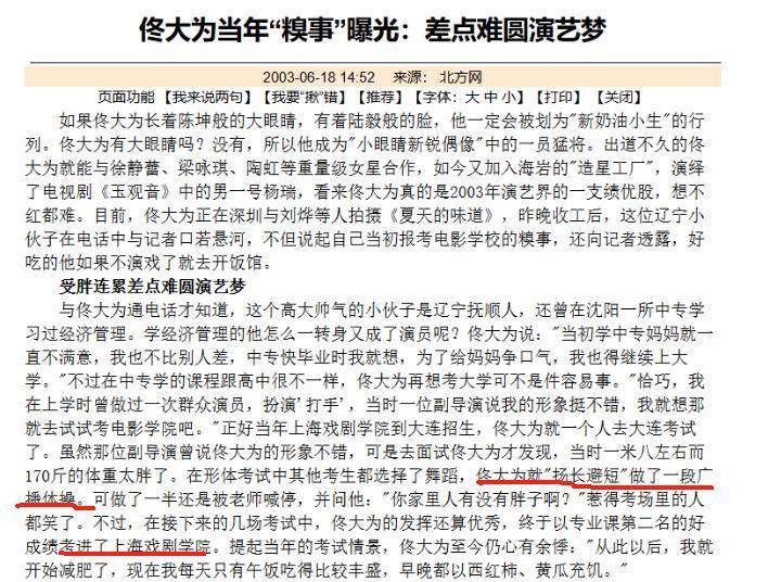 不像其他明星一样出身书香世家,中专毕业的佟大为并不精通任何才艺,在上戏面试时只跳了一段广播体操。